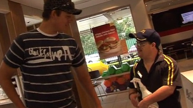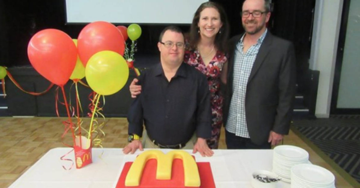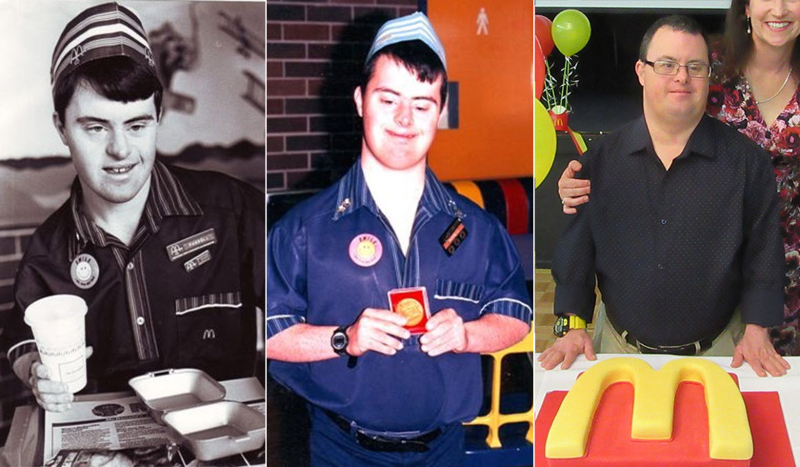 Russell O’Grady, de 48 años, funcionario de McDonald’s con síndrome de Down nos ha demostrado que los límites no existen y que cuando uno desea algo lo puede lograr, pues este hombre ha encantado a los clientes de la filial local donde ha trabajado en los últimos 32 años.