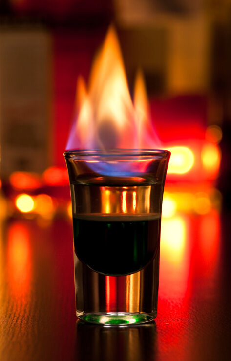 Esta bebida lleva tres partes de whisky; tres de ron dorado; tres de cointreau y una de granadina. Sírvelo en un vaso de trago largo y flaméalo, para evaporar un poco el alcohol.