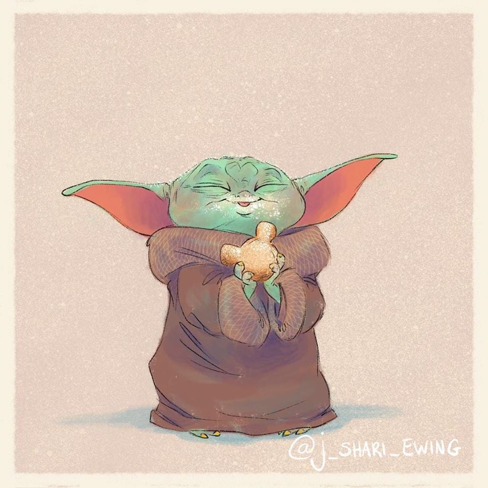 Desde que apareció la figura de Baby Yoda todo el Internet se volvió loco de amor y comenzó a salir en todas partes y en todas las formas posibles, una de ellas son unas imágenes del usuario de Instagram j_shari_ewing, quién subió unas ilustraciones de este personaje comiendo bocadillos de Disney.