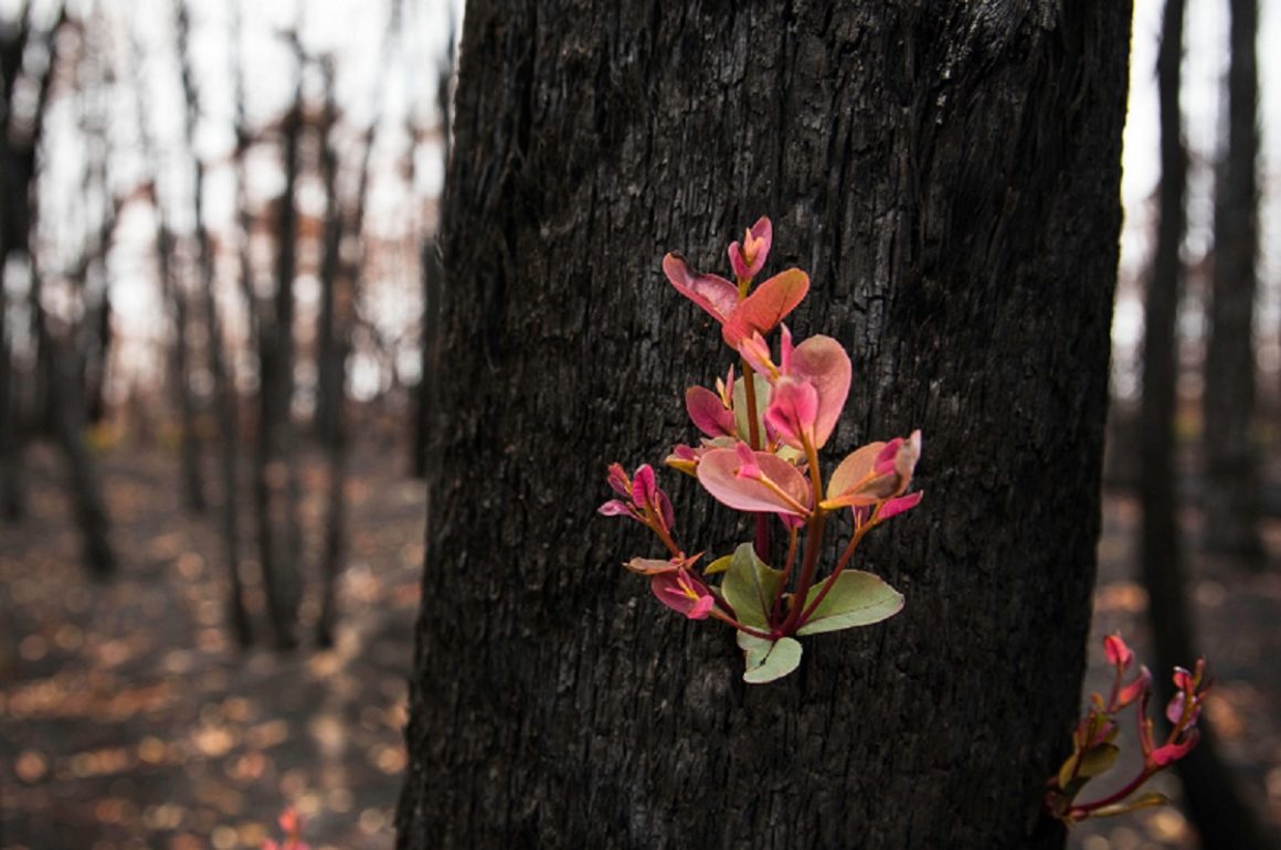 Fueron tomadas unas fotografías de algunos brotes de hojas y flores nuevas. Así, la vegetación australiana se rehúsa a morir, tras los devastadores incendios que arrasaron con todo a su paso. El fuego feroz, puso en riesgo miles de viviendas, cobró la vida de 24 personas y al menos 450 millones de animales.
