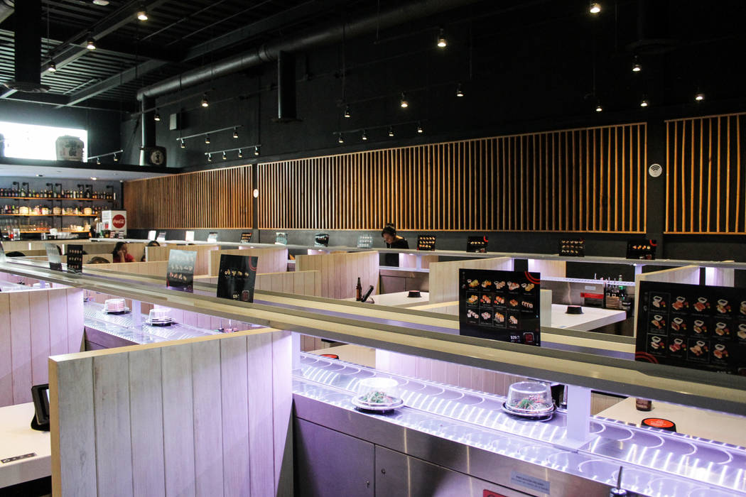 En la banda que pasa a lado de todas las mesas del lugar hay rollos de sushi de todo tipo y aperitivos como fruta. En caso de que se te pase lo que quieres, no te preocupes, lo puedes pedir por la tableta y llegará hasta tu mesa.
