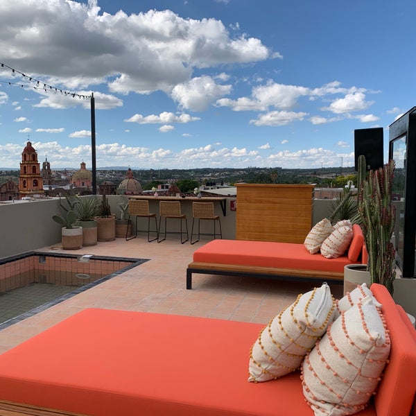 Además de la belleza del bar, el hotel es uno de los espacios dirigidos al arte en esta ciudad. En su interior mezcla diseño mexicano con piezas como: lámparas de Editora Nacional, sillones calaca de Comité de Proyectos. Parte de la decoración esta integrada por macetas con espejos de Paloma Layseca y los gobelinos tejidos de Meli Ávila.