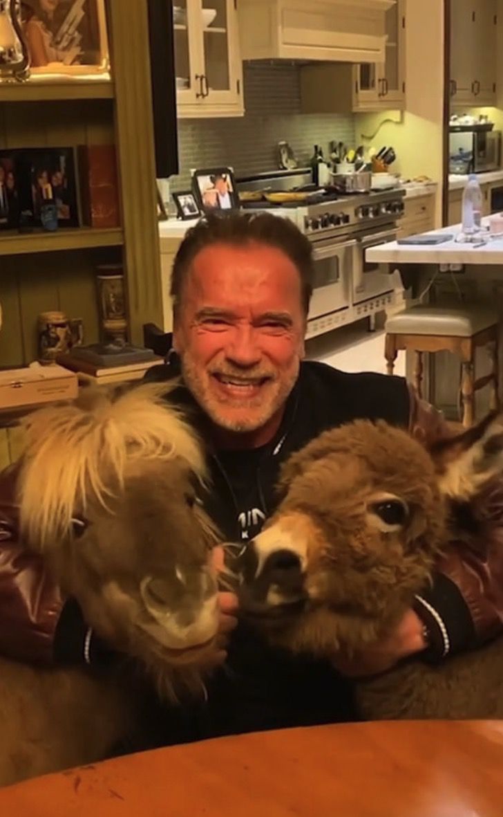 Arnold Schwarzenegger con su ¿Pony y su burro?