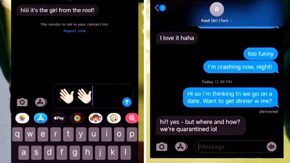 Por su parte, la chica, llamada ‘Tori’ no dudó y le envió de inmediato un mensaje a Jeremy. Asimismo, luego de chatear unos minutos, acordaron una cita “a distancia”, cada uno desde su techo. Además, se vieron usando facetime y Jeremy recapituló todo en su cuenta de TikTok donde ya se hizo famoso.