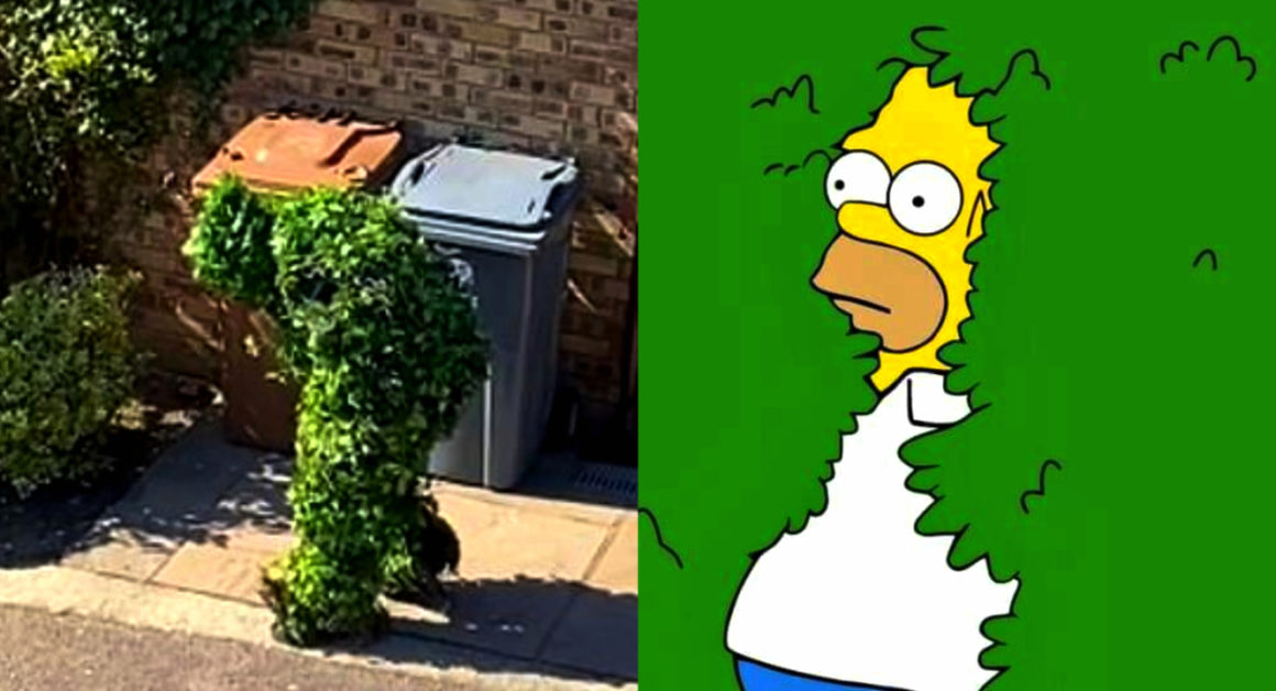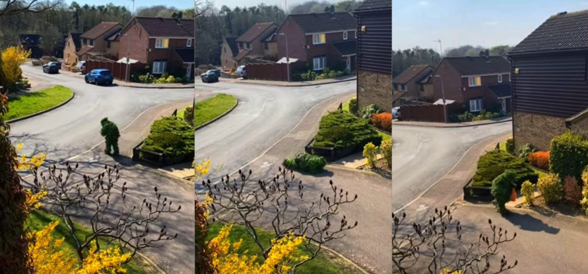Una pareja de Stevenage, Reino Unido, compartió un vídeo en el que muestran a uno de sus vecinos disfrazado de arbusto para salir a ‘la tiendita de la esquina’. Las imágenes muestran al hombre repleto de hojas, como un arbusto, y aparentemente escapando para salir sin ser detenido y después volver a casa.