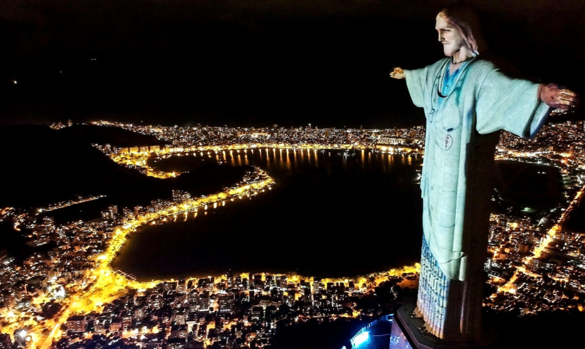 Este ‘Domingo de Pascua’, se inauguró un homenaje en la escultura del Cristo Redentor en Río de Janeiro, Brasil. Pues vistieron a Cristo de médico en honor a los trabajadores de la salud de Brasil, y también proyectaron los rostros de los médicos brasileños que trabajan en la lucha contra el coronavirus.