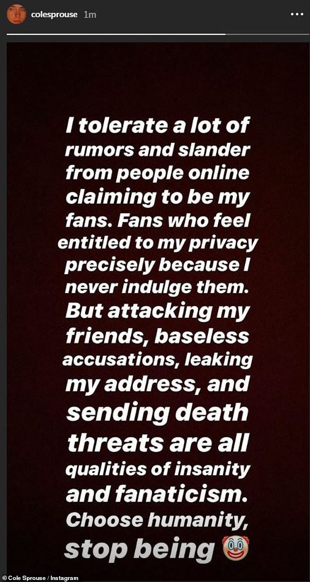 El primero fue Cole, quien acudió a su cuenta de Instagram para criticar la actitud de aquellos ‘’fans tóxicos’’ que lo único que hace es crear problemas donde no los hay: