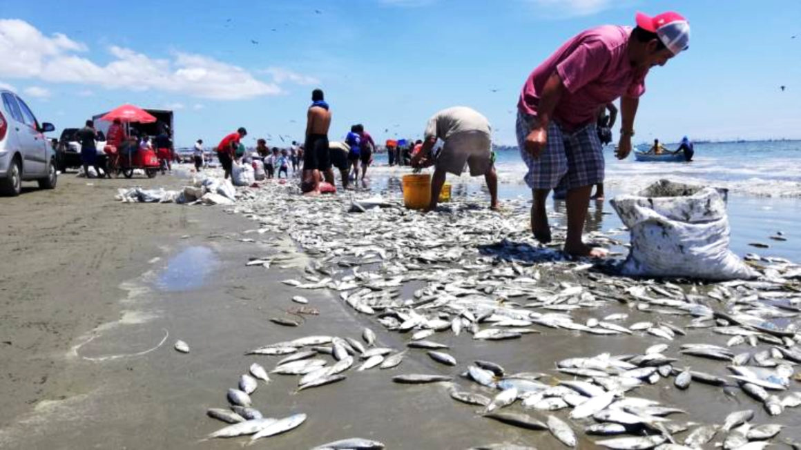Finalmente, el suceso se dio en la zona de playa de Pie de la Cuesta, donde a orillas del mar miles de sardinas se encontraban listas para los pobladores, quienes sufren la crisis de pescadores y además se dedican al turismo.