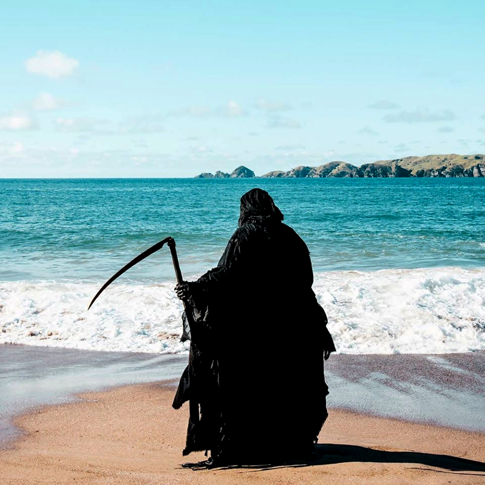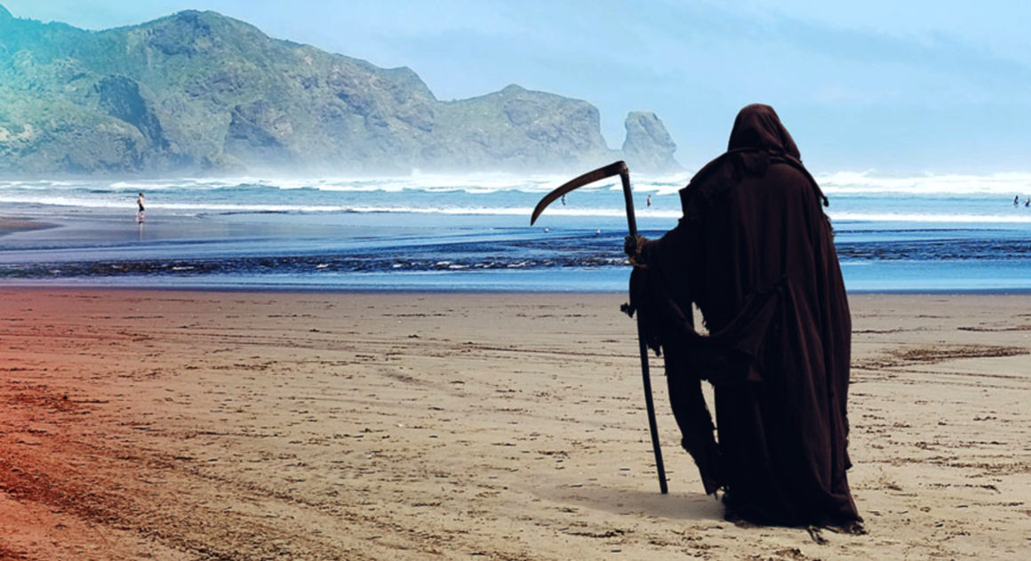 Se trata de un experimento de concientización, donde un sujeto disfrazado de la muerte recorrió las playas de Nueva Zelanda en 2017. El proyecto ‘The Swim Reaper’ tiene como objetivo causar conciencia en las personas, originalmente, para que no se metan al mar si no saben nadar.