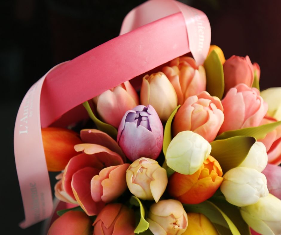 En este diseño el chef buscó crear una lujosa caja de donde se desbordarían tulipanes de azúcar hechos a mano. La paleta de colores contempla el fucsia como el principal y tulipanes de colores amarillos y anaranjados con una tipografía grabada en color plata sobre la pared del pastel. El costo del pastel es de $ 1, 895 pesos.