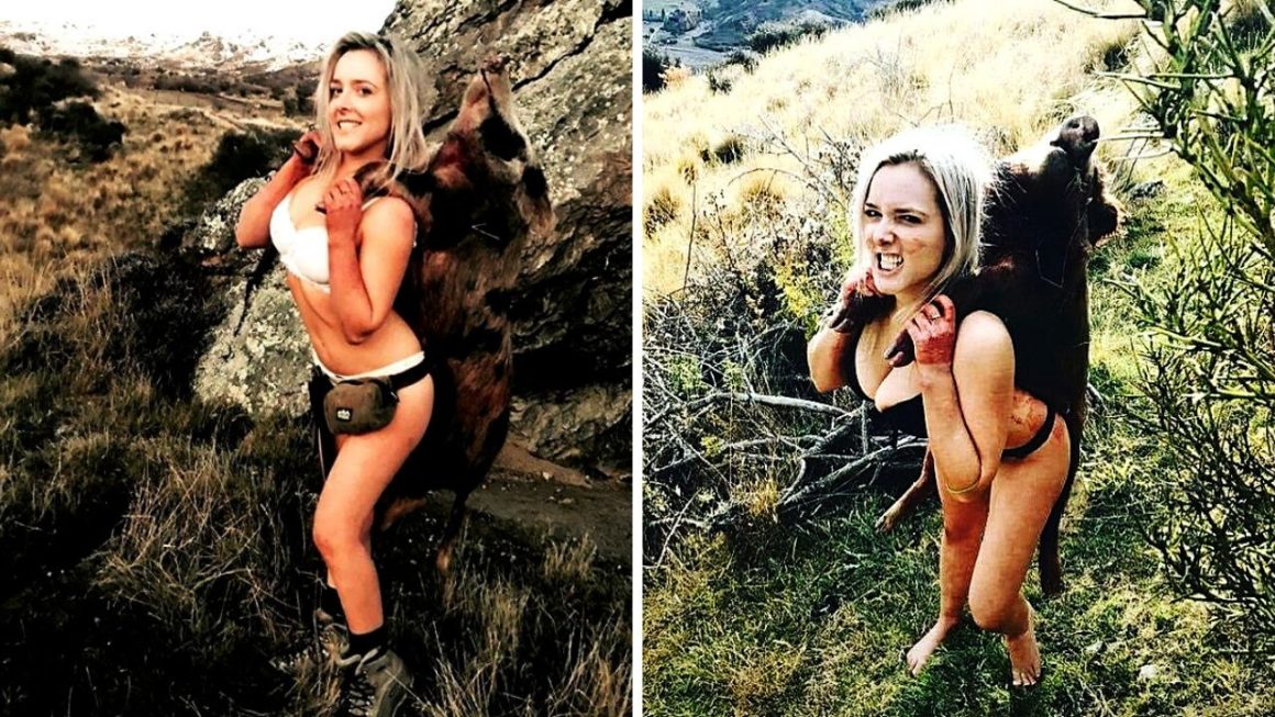 Esta mujer se toma fotos “sexys” con los animales que caza 📸❌😈