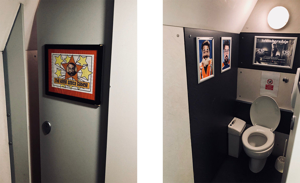 Las palabras de alguien del nivel de Tarantino pronto se hicieron conocer por lo que para el año 2007, el también director Kevin Smith declaró “No sé, Tarantino nunca ha venido por aquí (Prince Charles Cinema) y le ponen su nombre al bar. Esta es mi segunda visita y ni siquiera le han puesto mi nombre al baño”. Al día siguiente, sus ”peticiones” se hicieron realidad y desde entonces existe un cubiculo en el baño dedicado al cineasta.