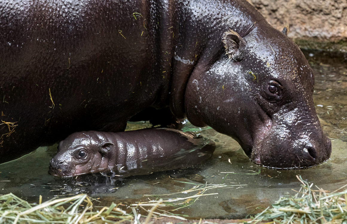Se trata de un hipopótamo pigmeo, el primero del zoológico de San Diego; Mabel un hipopótamo pigmeo de 4 años, dio a luz a su primer becerro el pasado mes de abril, pero la noticia se confirmó hace unos días porque esperaban que todo resultara bien. Con escasas 4 semanas de vida, este nuevo integrante de la familia es el primer ejemplar en 30 años.