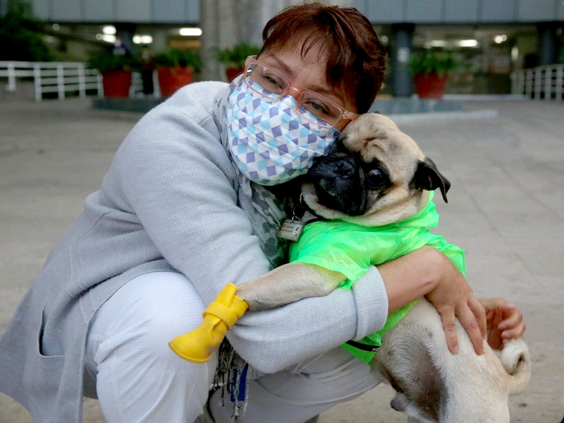 Con una jornada de 2 horas diarias, el can logra aliviar el estrés de médicos y enfermeras que se encuentran al frente de combate contra la enfermedad por Coronavirus.