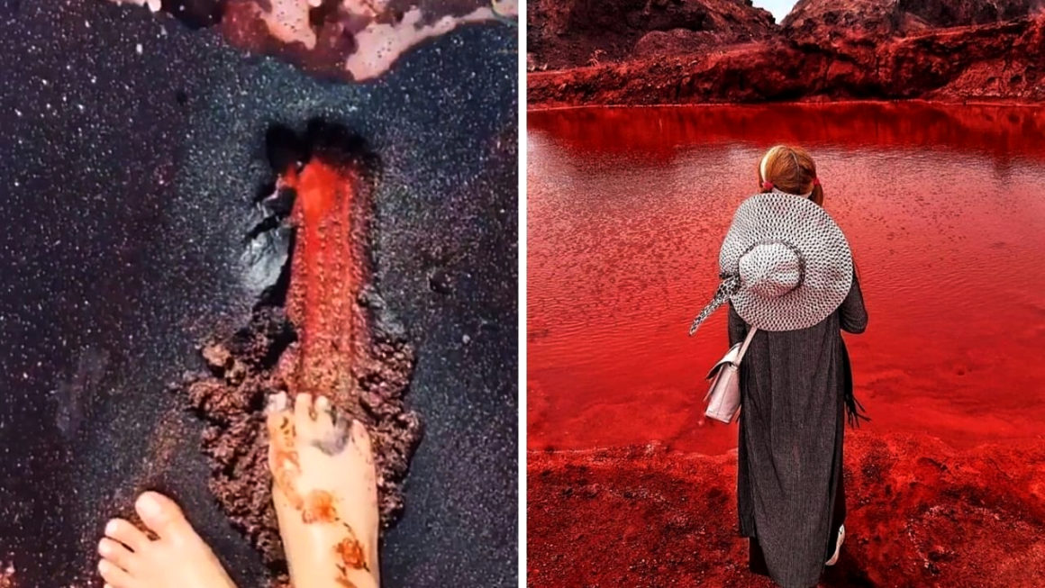 En la isla Hormuz, Irán, existe una peculiar playa que sangra. Así es, al caminar podrás experimentar la sensación del agua roja y la arena negra del lugar. Su color rojo proviene de un mineral llamado ‘Gelack’ que está presente en este tipo de arena.