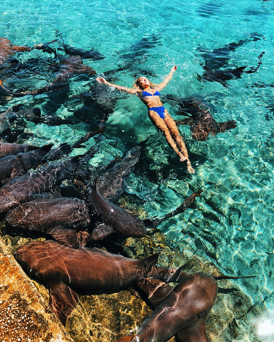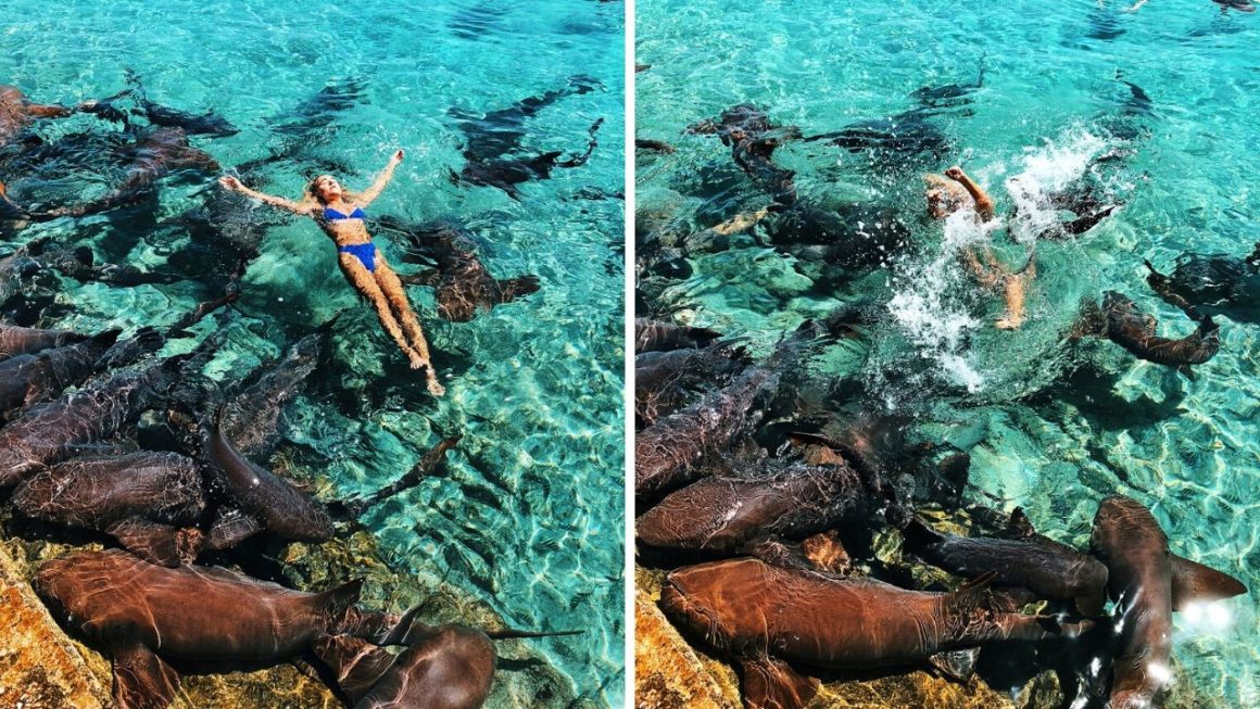 La joven modelo de Instagram se metió a andar con cientos de tiburones nodriza 🌊🦈
