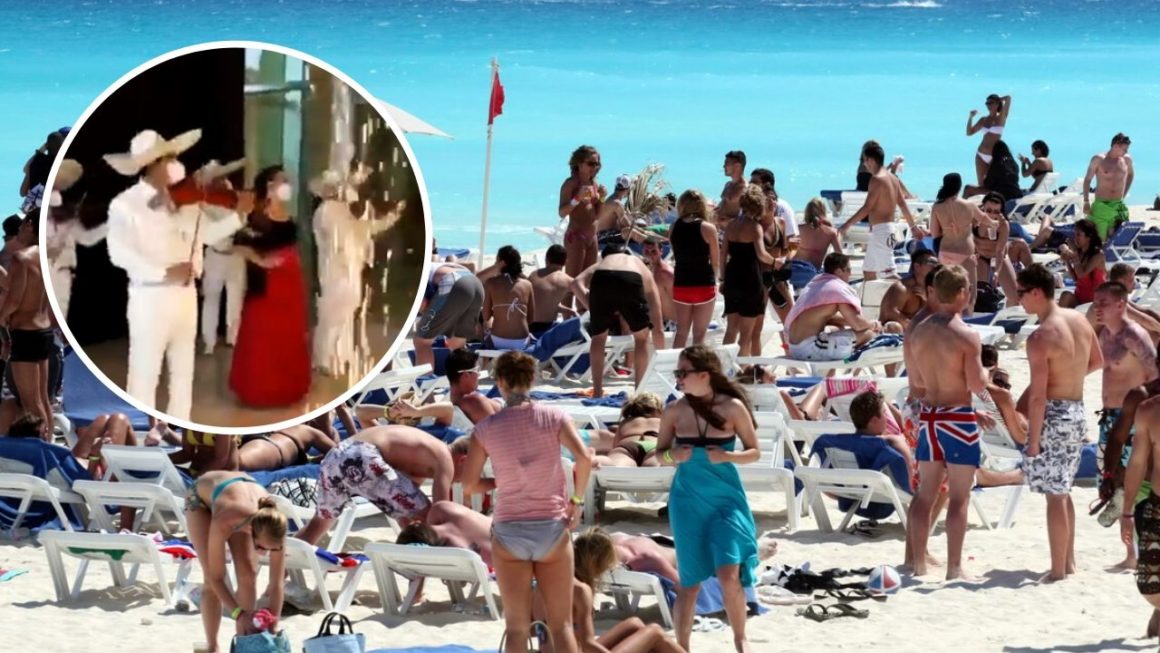 Pese a la pandemia, reciben a turistas en Cancún ¡con mariachis! 😷🇲🇽