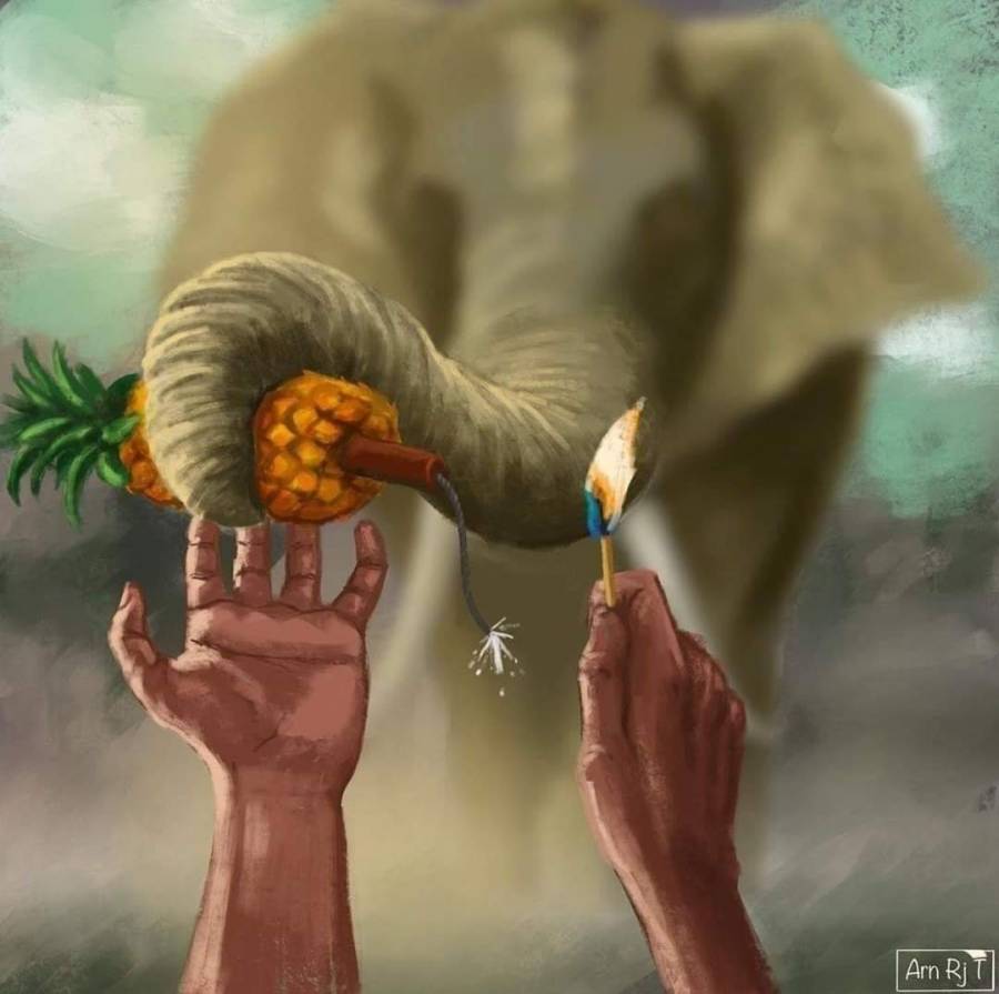 La policía india informó del arresto de un hombre, acusado de causar la muerte de una elefanta preñada que ingirió una piña rellena de petardos, misma que explotó en su boca.