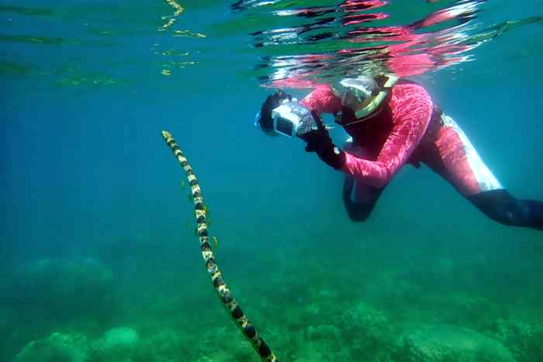 Este conjunto de mujeres nadan 5 días a la semana ya que descubrieron una gran población de serpientes marinas venenosas en una bahía en Numea, Francia; mismas que son difíciles de encontrar. La especie de serpiente es conocida como “Cabeza de Olivo”, además son tan raras en la zona que sólo se han visto 6 veces en 15 años.