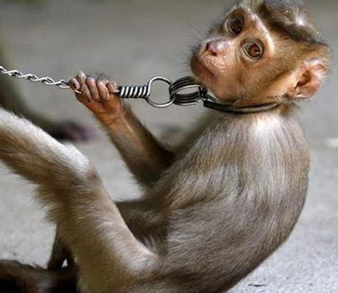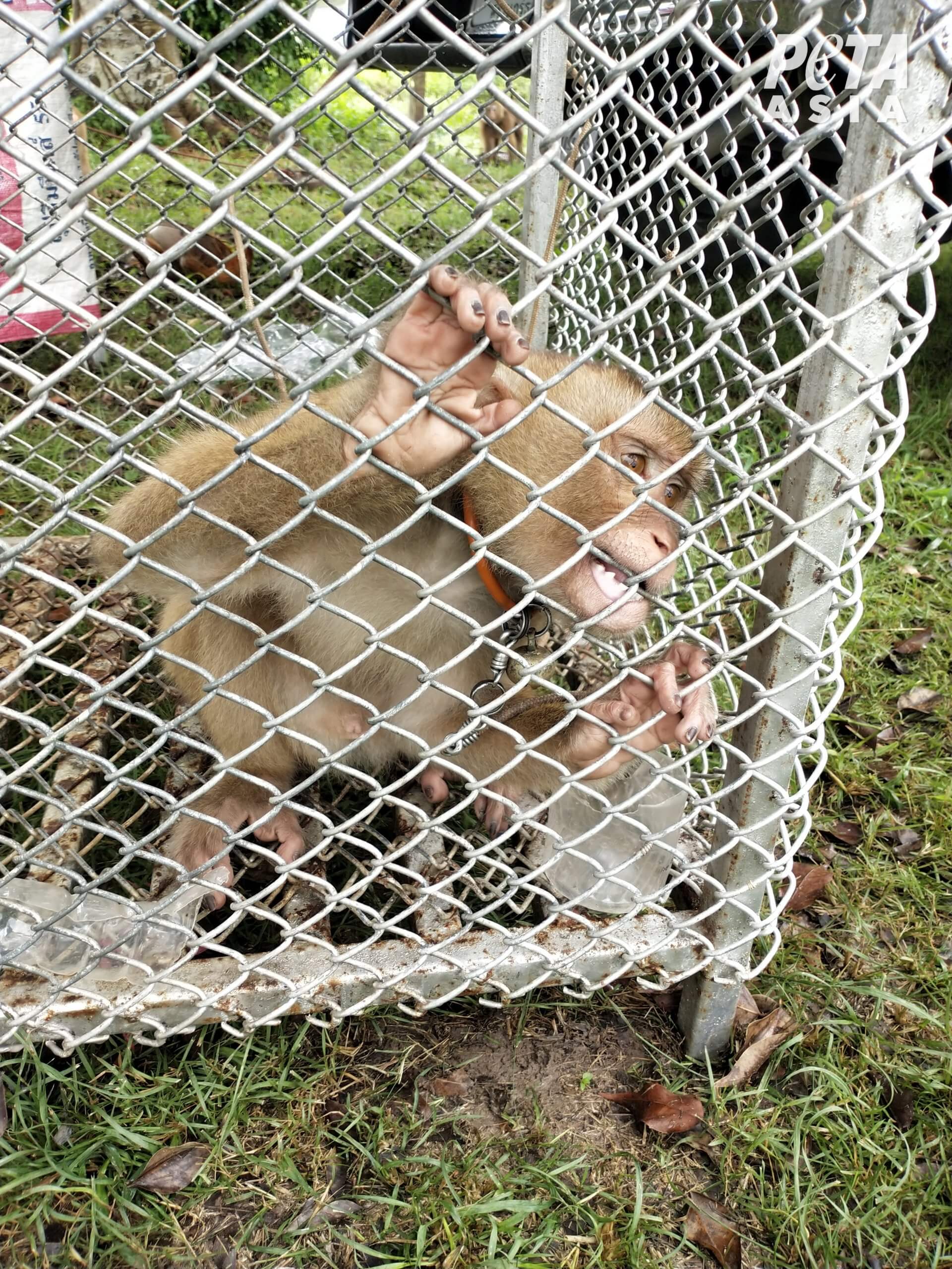 Desde PETA aseguran que las granjas están sucias y que los trabajadores extraen los colmillos a los monos para evitar que se defiendan. Además, para ganar un dinero extra, los empleados fuerzan a algunos simios a participar en humillantes shows callejeros para entretener a los turistas.