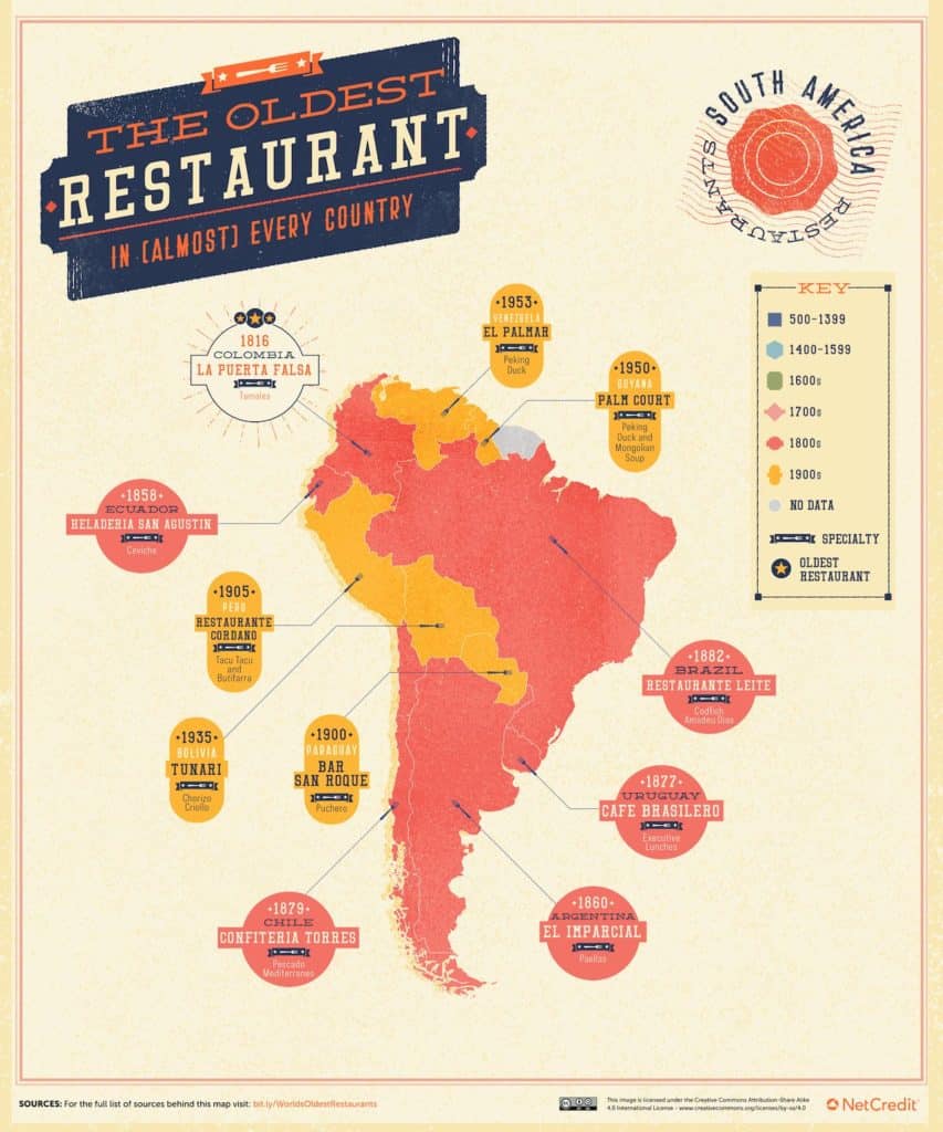 El equipo de NetCredit se adhirió a la definición relativamente amplia de los restaurantes más antiguos “que aún siguen atendiendo”. Comenzaron con búsquedas básicas y luego revisaron fuentes confiables y sitios de viajes, y llamaron a algunos dueños de negocios a verificar dos veces cuando fuera necesario.