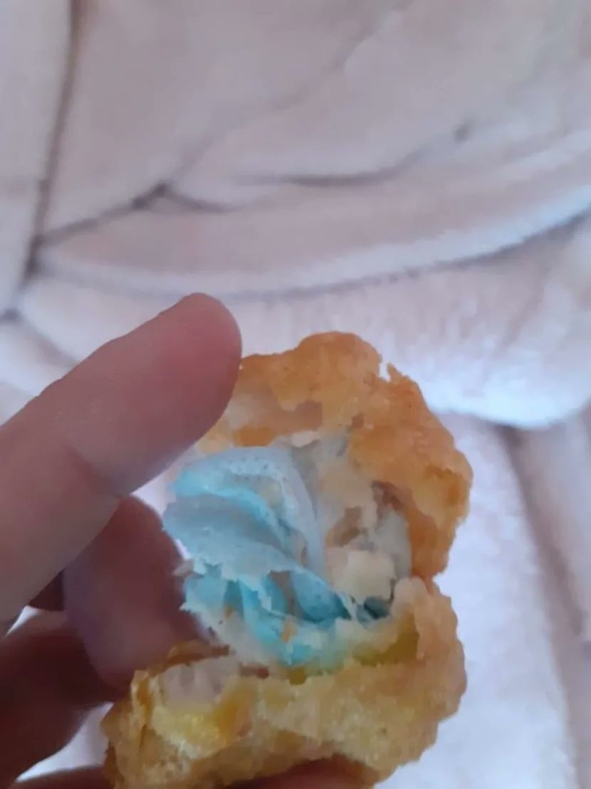 La mujer detalló que comía nuggets de pollo junto con sus hijos en su casa el pasado martes, cuando la pequeña comenzó a ahogarse, lo que le ayudó a darse cuenta de lo que había en su comida.