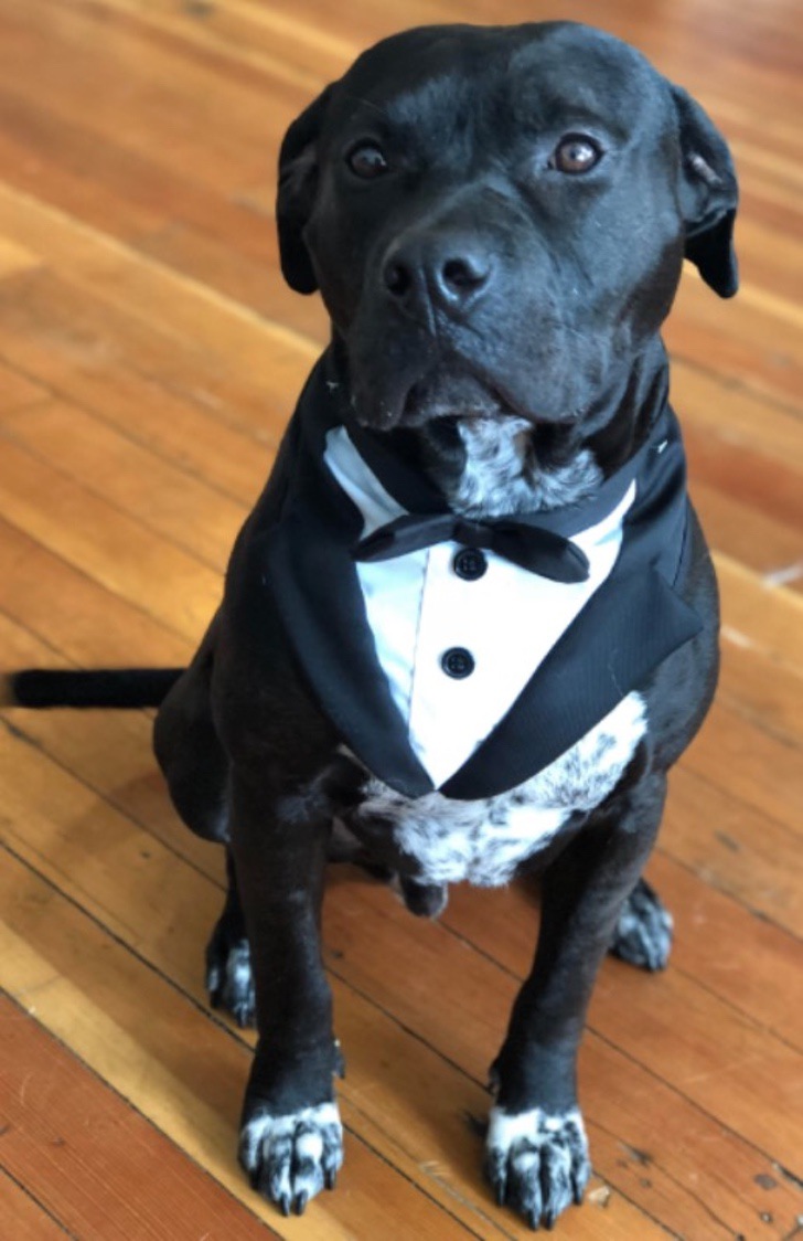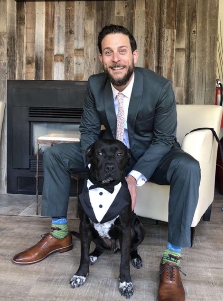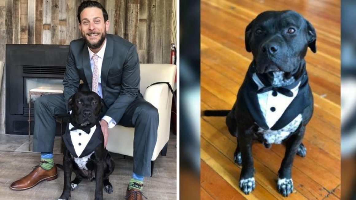 Eligió a su perro como padrino de bodas y se robó todas las miradas. Además, el perro llegó con esmoquin al altar para entregarle los anillos nupciales a los novios.