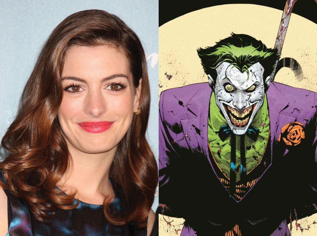 No mucho tiempo después del lanzamiento del trailer de Las Brujas, el artista gráfico, Bosslogic, famoso por su diseños con personajes de DC o Marvel, echó su imaginación a volar y creó un poster en el que podemos apreciar a Anne Hathaway como el Joker. A continuación el diseño que ya se ha hecho viral entre los cibernautas y que, al parecer están recibiendo con bastante agrado.