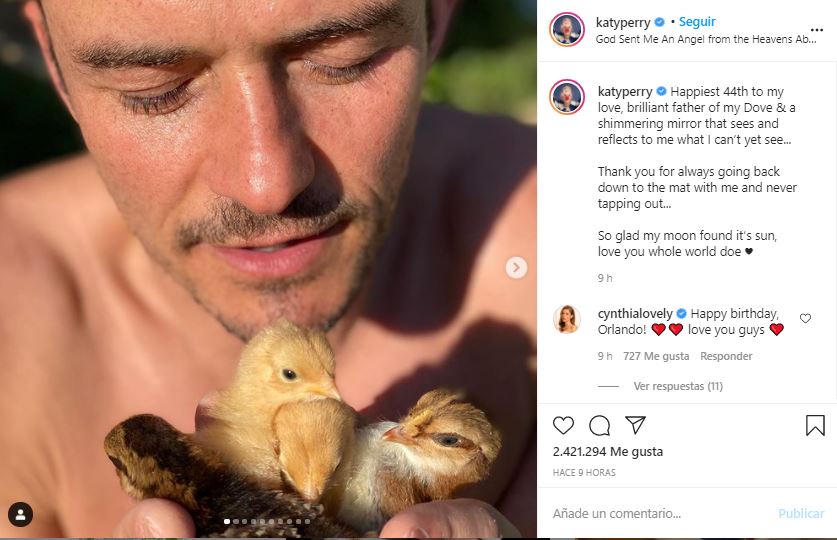 Asimismo, le agradeció por vivir una paternidad cercana y celebró sus 44 años de vida. Cabe destacar que, las fotografías retratan un día cotidiano en pareja y al mismo tiempo, nos dan a conocer un lado más humano y sentimental del actor. Además, la cantante lo describe como su ángel: “Dios me envió un ángel del cielo”, escribió Katy.
