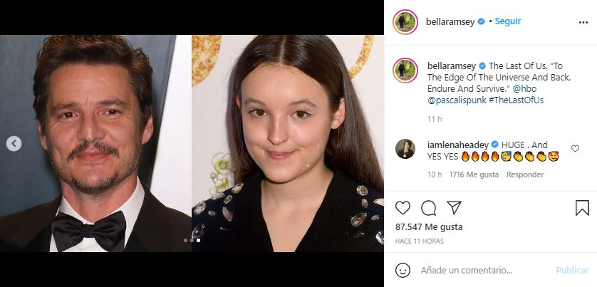 Ramsey publicó la misma imagen con la frase: “The Last of Us. Al fin del universo y de regreso. Aguanta y sobrevive”, a lo que Pascal le respondió: “Nos vemos pronto!!”.