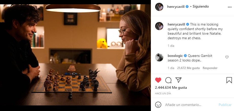 Cabe destacar que, ambos subieron la misma foto a sus cuentas de Instagram, donde primeramente, el actor escribió: “Este soy yo mirándome tranquilamente confiado poco antes de que mi hermosa y brillante amor Natalie, me destruya en el ajedrez”.