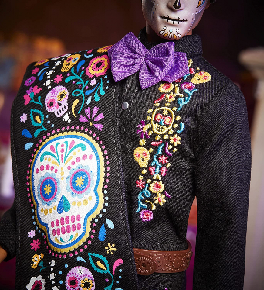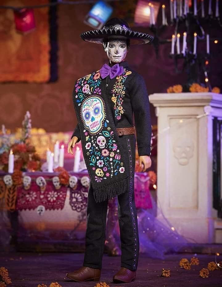El novio de Barbie se transformó en un típico “catrín”, porta el tradicional traje de charro (un coordinado de pantalón y camisola negra, en cuya pechera presenta bordados de flores y catrinas). Además, como accesorio tendrá un sarape a juego con los bordados de la camisa, botas y sombrero. También, el rostro representará la celebración del “Día de Muertos”.