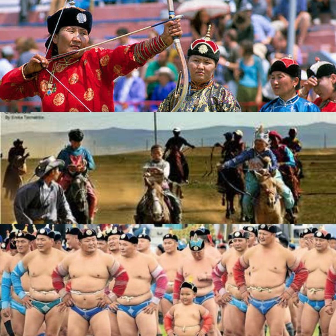 Con esa fiesta se celebra la independencia de Mongolia. Ocurre cada 11 y 12 de julio. Los tres deportes mongoles más importantes son representados: lucha libre, tiro con arco y carreras de caballos.