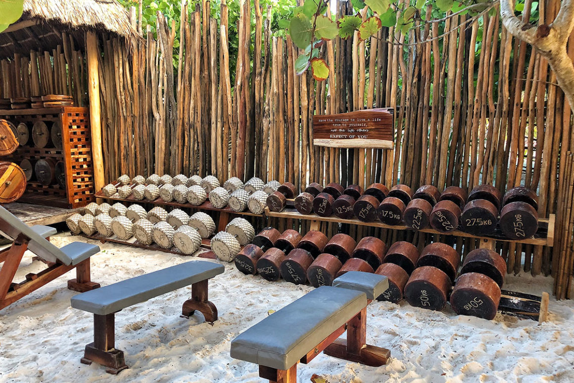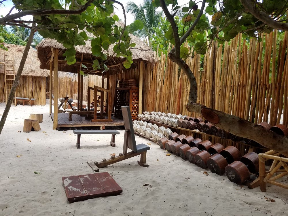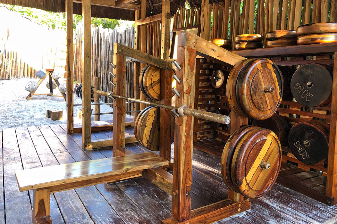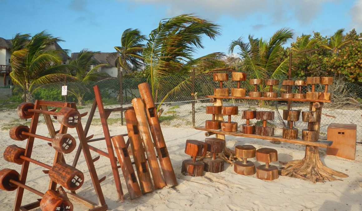 El caribe mexicano nos ofrece un gimnasio de playa único donde casi todo el equipo está hecho de materiales naturales: madera, piedra y mármol. En este lugar las opciones son muchas, desde ejercitarte a pie de playa, hasta hacerlo en un circuito.