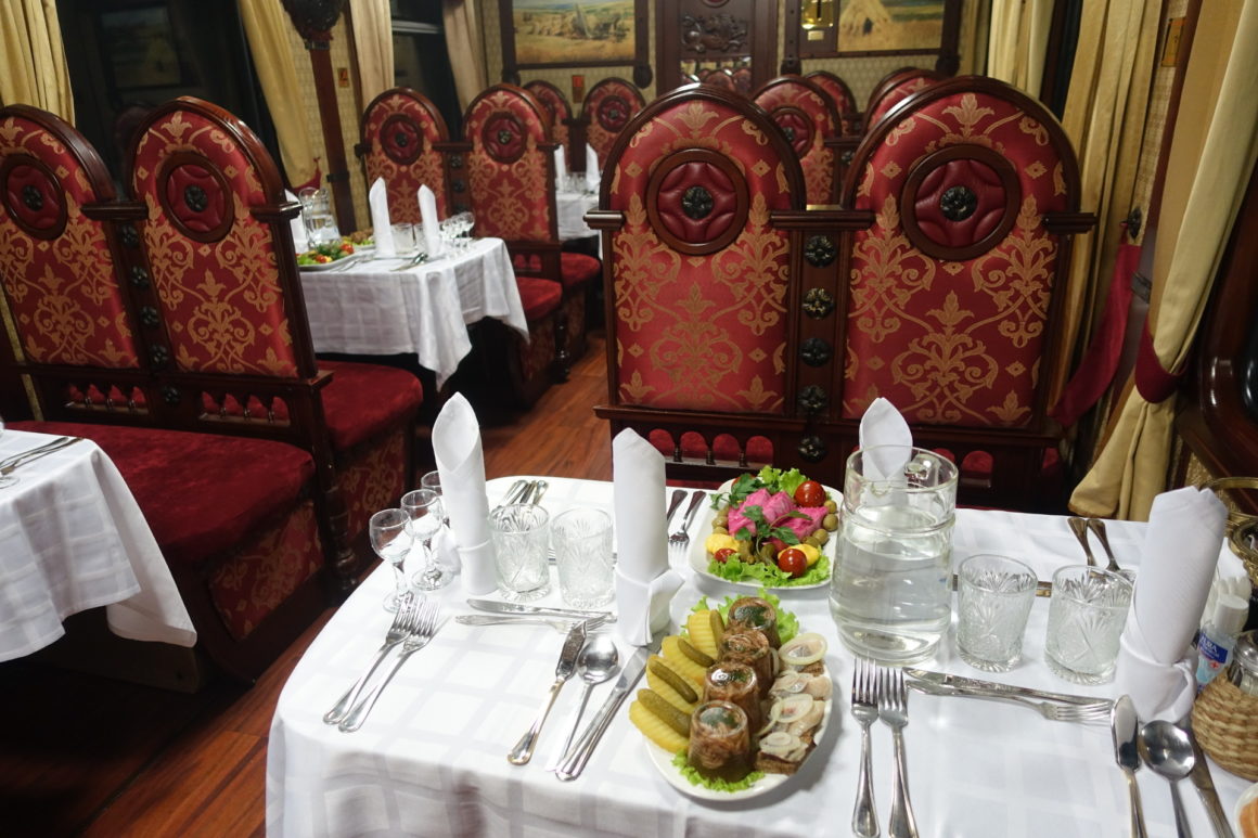 El tren tiene dos categorías: Primera Clase (camarote privad y baño completo, acceso áreas y comedor de lujo y cena gourmet) y Segunda Clase (camarote y baño compartidos, cena tradicional sencilla). Por otra parte, encontrarás restaurante, bar y área de entretenimiento a bordo. La comida de fin de año es tradicional y local, pues el menú está adaptado dependiendo de la región por donde el tren va pasando.