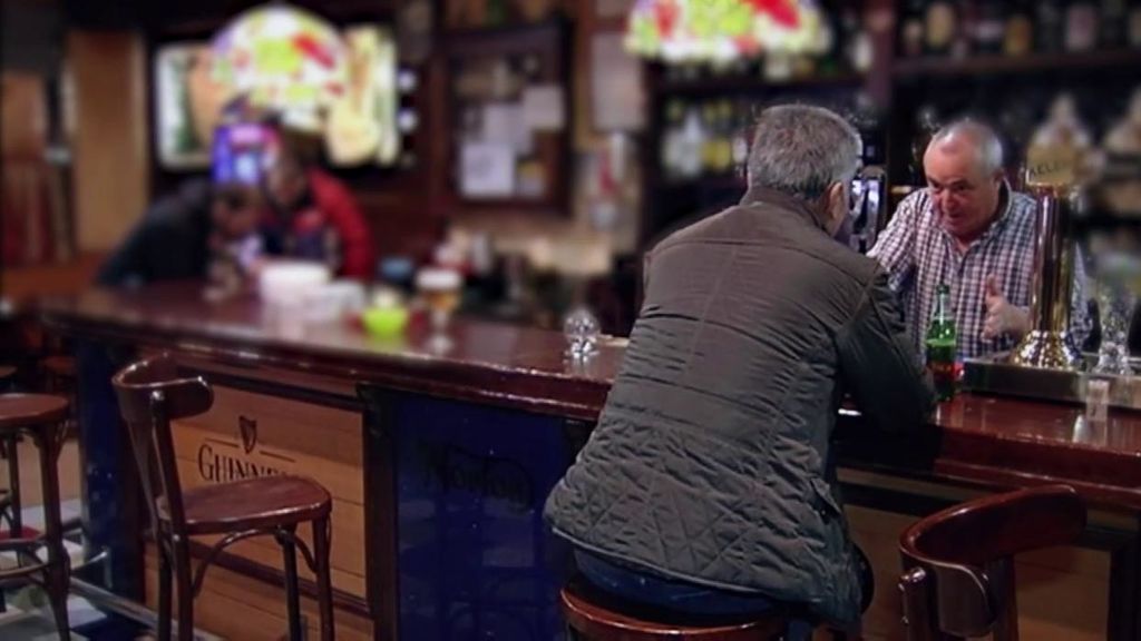 La conversación gira en torno a si había logrado salir del baño, a lo cual el hombre respondió lo siguiente: “claro que sí, ahora estoy tomándome una caña (cerveza) dentro de la barra”, lo que desató la risa de su interlocutor.