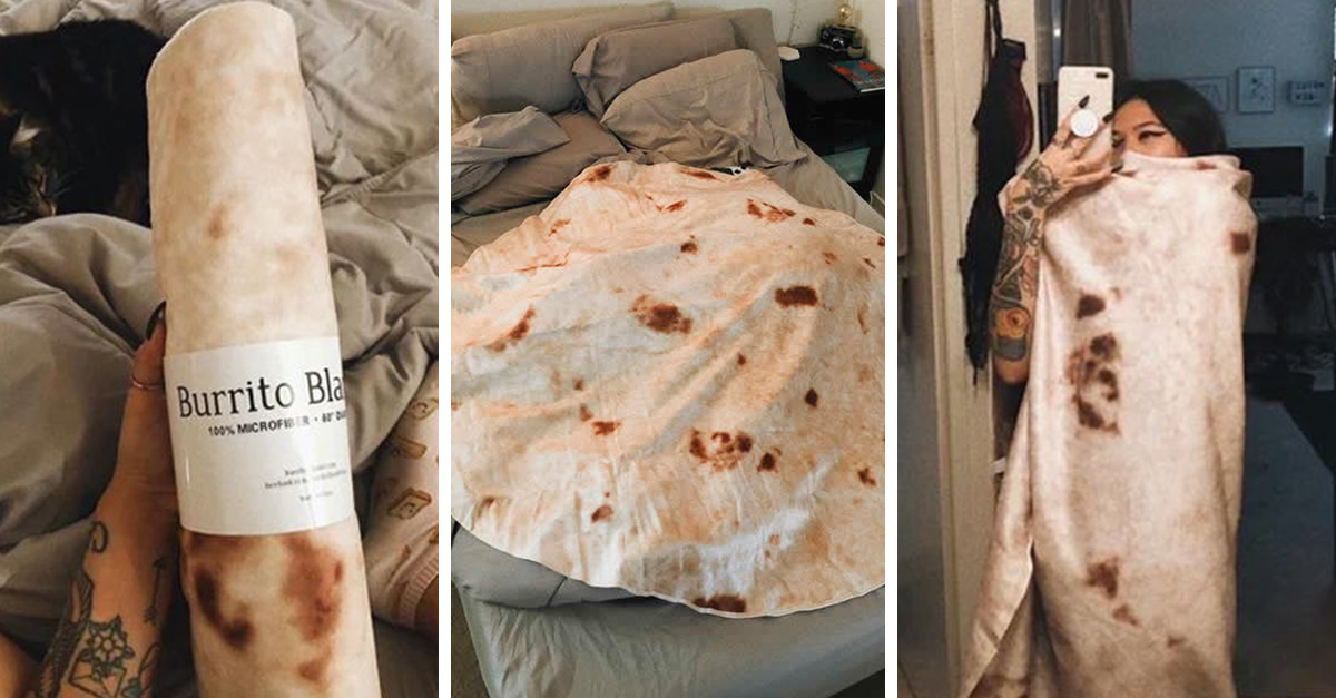 Si eres fan de los ricos burritos no debes dejar pasar la oportunidad de conseguir la cobija más perfecta que puedes encontrar: se trata de una frazada calienta con un estampado genial que parece una tortilla de harina.