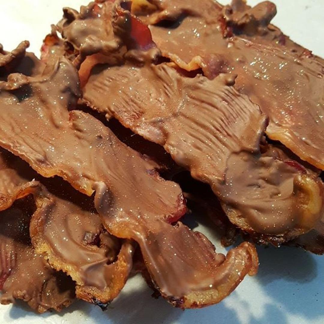 Las combinaciones de dulce con salado son el hit en cuanto a comidas extrañas que puedes amar u odiar, y que tal esta combinación en donde derrites el chocolate o caramelo y lo usas para bañar el tocino frito, lleno de calorías sin duda alguna.