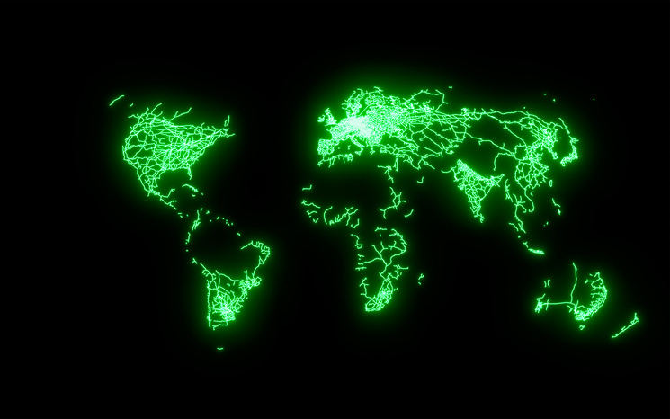 Peter Atwood, un ilustrador canadiense de 23 años especializado en la creación de mapas, decidió hacer estos mapas para mostrarnos la inmensidad de las ciudades y sus habitantes; la red de ferrocarriles y carreteras; el número de aeopuertos y puertos.